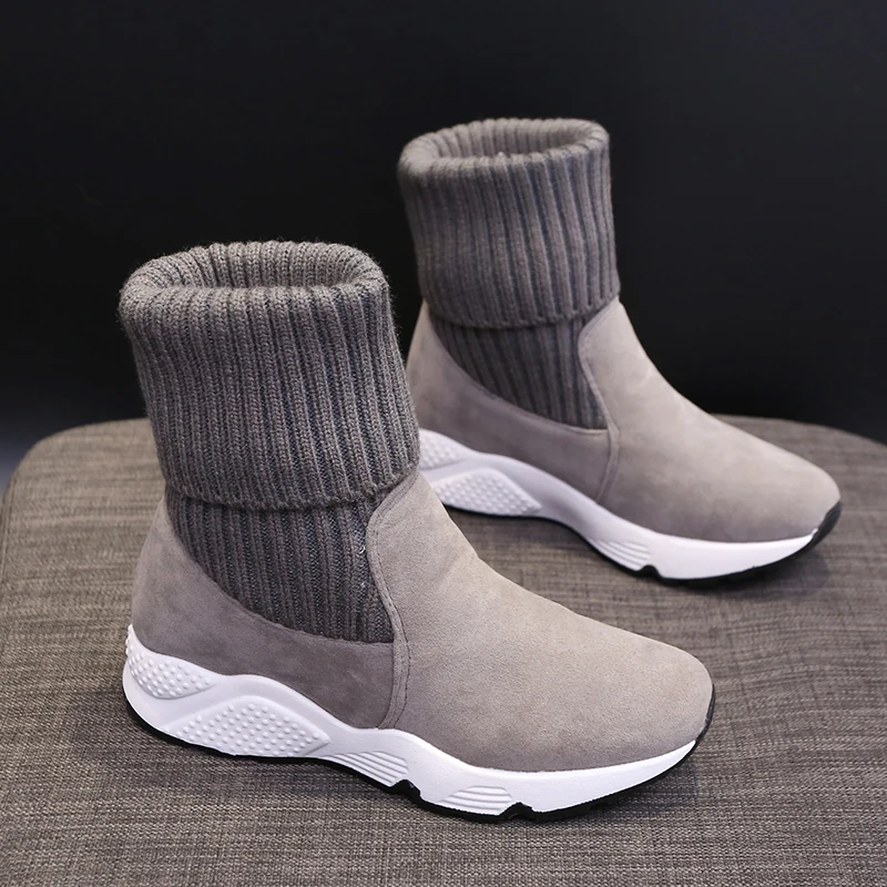 Free shipping High Top Running Shoes For Woman Chunky Non-slip Sock Sport Sneakers Women Warm Winter Thick Fur Sn